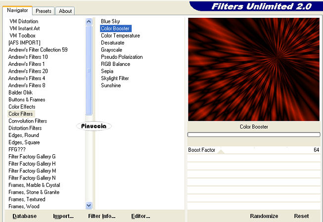 Effetti>Plugins>Filters Unlimited - Color Filter - Color Booster, come al punto 1.