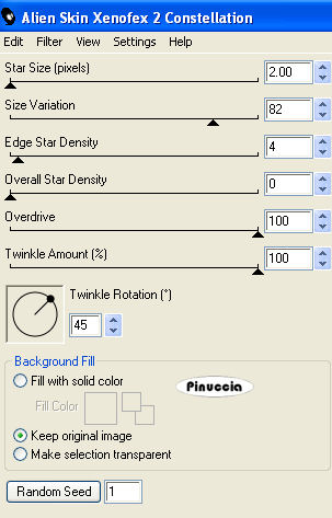 Ripeti l'effetto Constellation, con gli stessi settaggi, ma cliccando una volta su Random Seed.