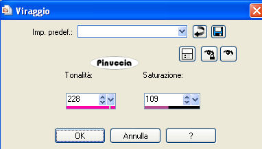 Regola>Tonalità e saturazione>Viraggio e trascrivi i valori annotati nelle rispettive caselle.
