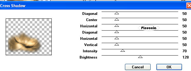 Ripeti Effetti>Plugins>Graphics Plus - Cross Shadow, con i seguenti settaggi.