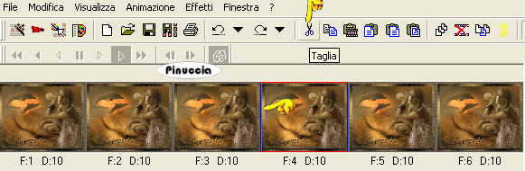 Clicca sul fotogramma n. 4 per selezionarlo (soltanto questo deve avere la cornice blu).