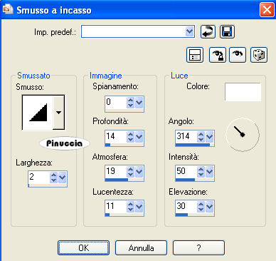 Effetti>Effetti 3D>Smusso a incasso, con i settaggi precedenti.