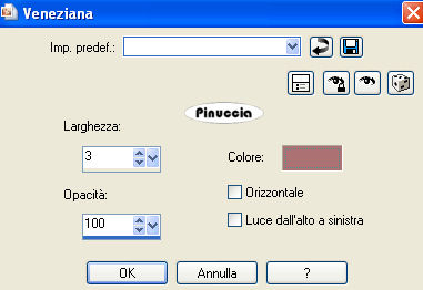 Effetti>Effetti di trama>Veneziana, con i seguenti settaggi e con il colore scuro di sfondo.