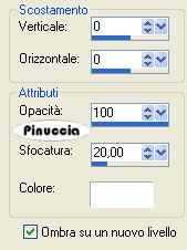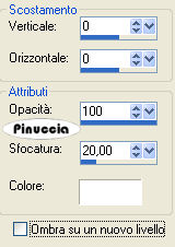 Effetti>Effetti 3D>Sfalsa ombra, con i settaggi precedente, ma con ombra su nuovo livello selezionato.