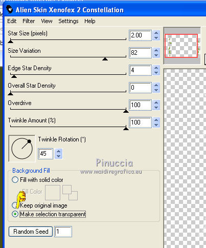 Ripeti l'Effetto Constellation con gli stessi settaggi, ma cliccando una volta su Random Seed.