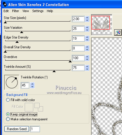 qui puoi trovare qualche risposta ai tuoi dubbi. Se l'argomento che ti interessa non è presente, ti prego di segnalarmelo. Questo tutorial è stato creato con PSP 9, ma può essere eseguito anche con le altre versioni di PSP. Per tradurlo, ho usato PSP X. Questo tutorial è una creazione di ©Sille e non può essere copiato su altri siti nè essere offerto per il download. Lo stesso vale per la mia traduzione. Grazie ai creatori dei tubes che mettono a disposizione il loro lavoro in vari gruppi di condivisione. Rispetta il lavoro degli autori, non cambiare il nome del file e non cancellare il watermark. ![]() Occorrente: Materiale qui Per i tubes grazie Guismo e K@rine . Filtri: se hai problemi con i filtri, qui Graphics Plus - Cross Shadow qui DC Special - RaiseIt qui Alien Skin Xenofex - Constellation qui Ti servirà anche Animation Shop qui