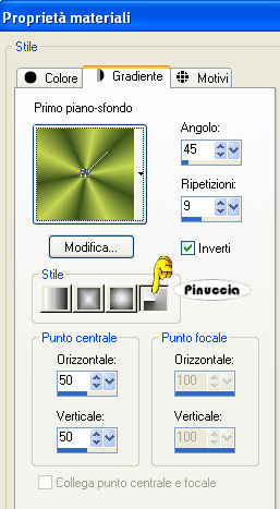 Passa il colore di primo piano a Gradiente di primo piano/sfondo, con i seguenti settaggi: