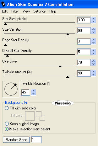Ripeti l'Effetto Constellation, con gli stessi settaggi, ma cliccando una volta su Random Seed.