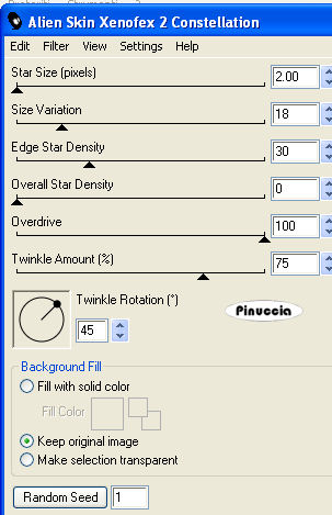 Ripeti l'Effetto Constellation con gli stessi settaggi ma cliccando una volta su Random Seed.