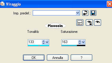 Regola>Tonalità e saturazione>Viraggio e trascrivi i dati nelle rispettive caselle:
