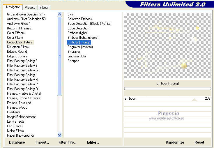 Effetti>Plugins>Filters Unlimited 2.0 - Convolution Filters - Emboss(strong).