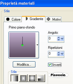 Passa il colore di primo piano a Gradiente di primo piano/sfondo, con i seguenti settaggi: