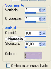 Effetti>Effetti 3D>Sfalsa ombra, con i seguenti settaggi, con il colore chiaro.