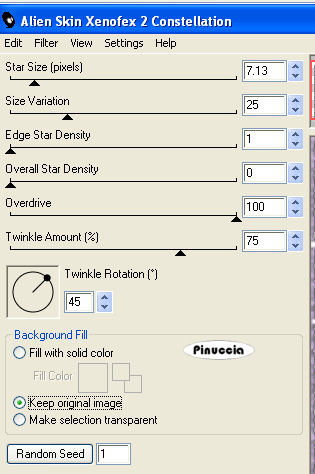 Ripeti l'Effetto Constellation, con gli stessi settaggi, ma cliccando una volta su Random seed.