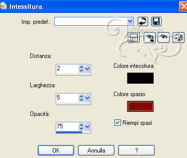 Colore intessitura: nero - colore spazio: colore di primo piano.