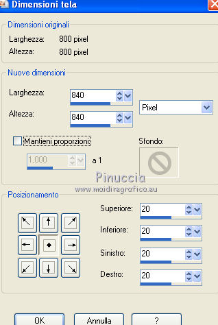 Immagine>Dimensioni tela.