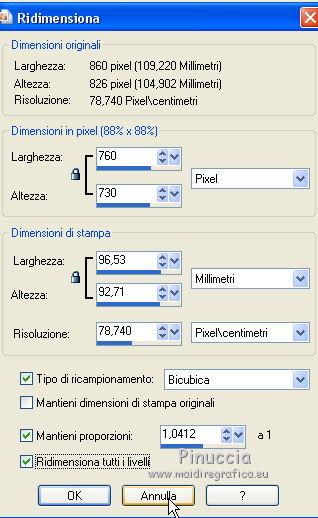 Immagine>Ridimensiona - 760 x 730 pixels, tutti i livelli selezionato.