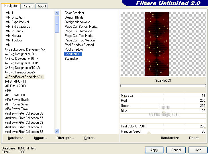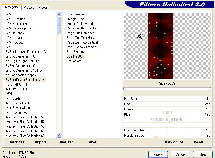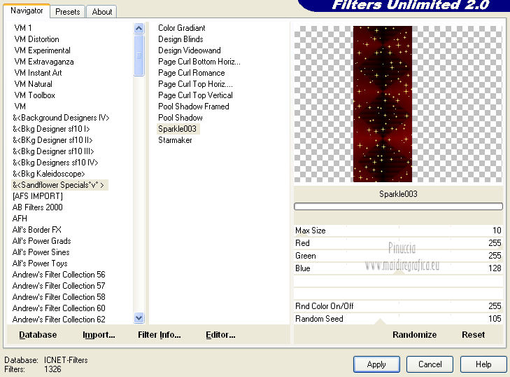 Effetti>Plugins>Filters Unlimited 2.0 - Sandflower Specials - Sparkle 003.