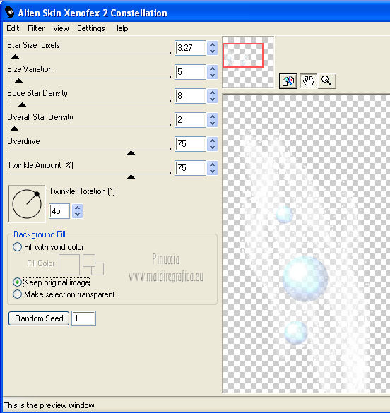 Effetti>Plugins>Alien Skin Xenofex 2.0, clicca su Random Seed e ok.