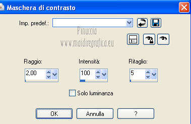 Regola>Messa a fuoco>Maschera di contrasto.