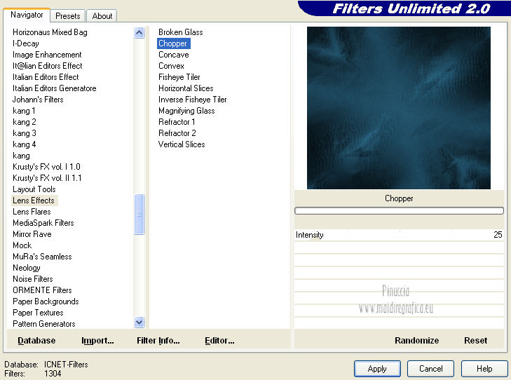 Effetti>Plugins>Filters Unlimited 2.0 - Lens Effects - Chopper.
