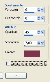 Su tutti gli elementi tranne la cornice: Effetti>Effetti 3D>Sfalsa ombra, colore #80334a