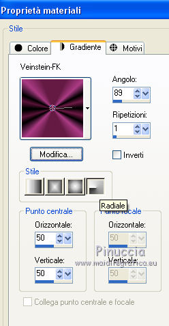 1. Passa il colore di primo piano a Gradiente, e seleziona il gradiente Veinstein FK, stile Radiale.