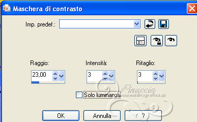 Regola>Messa a fuoco>Maschera di contrasto, con i settaggi precedenti.