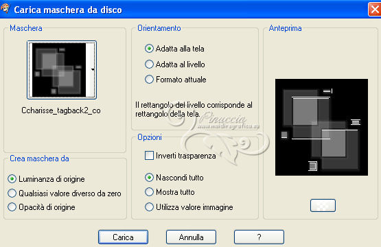 Cerca e carica la maschera Ccharisse_tagback2_co, con i seguenti settaggi: