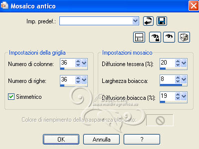 Effetti>Effetti di trama>Mosaico antico, con i settaggi precedenti.