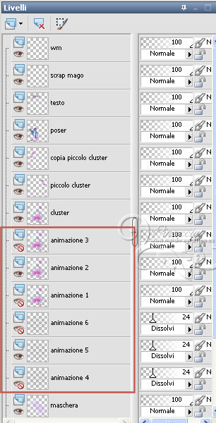 Livelli>Duplica - 2 volte - e rinomina i livelli "animazione 5" e "animazione 6".