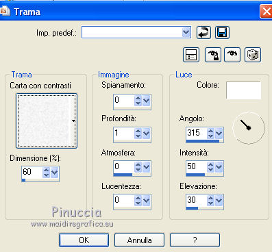 Effetti>Effetti di trama>Trama - seleziona la trama Carta con contrasti, con i seguenti settaggi.
