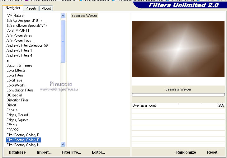 2. Effetti>Plugins>Filters Unlimited - Filter Factory Gallery F - Seamless Welder.