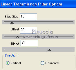 qui puoi trovare qualche risposta ai tuoi dubbi. Se l'argomento che ti interessa non è presente, ti prego di segnalarmelo. Questo tutorial è stato creato con PSP X2, ma può essere eseguito anche con le altre versioni di PSP. Per tradurlo, ho usato PSP X. Un ringraziamento agli artisti che hanno realizzato il materiale usato in questo tutorial. Occorrente: Materiale qui Il tube è di @nnTdstudio. Filtri: DSB Flux qui ![]() Imposta il colore di primo piano con il #78685f, e il colore di sfondo con #ddc7b9. Apri tutto il materiale, comprese le maschere. 1. Apri una nuova immagine trasparente 900 x 550 pixels, e riempila con il colore di primo piano #78685f.2. Livelli>Nuovo livello raster. Riempi il livello con il colore di sfondo #ddc7b9.3. Livelli>Nuovo livello maschera>Da immagine. Apri il menu sotto la finestra di origine e vedrai la lista dei files aperti. Seleziona la maschera MSK10, con i seguenti settaggi: ![]() Effetti>Effetti 3D>sfalsa ombra, con i seguenti settaggi, colore #c0c0c0. ![]() 4. Effetti>Effetti artistici>Cera liquida. 5. Livelli>Nuovo livello raster. Riempi con il colore di sfondo #ddc7b9.6. Livelli>Nuovo livello maschera>Da immagine. Seleziona la maschera MSK7: ![]() 7. Selezione>Seleziona tutto. Selezione>Mobile. 8. Effetti>Plugins>DSB Flux - Linear Transmission: ![]() 9. Effetti>Effetti 3D>sfalsa ombra, con i seguenti settaggi, colore nero. ![]() Selezione>Deseleziona. 10. Apri il tube "@nn_281208_misted_womananvil" e vai a Modifica>Copia. Torna al tuo lavoro e vai a Modifica>Incolla come nuovo livello. Sposta il tube nell'angolo in basso a sinistra.11. Apri il tube "@nn_090109_001_misted_faceRP_tdstudio" e vai a Modifica>Copia. Torna al tuo lavoro e vai a Modifica>Incolla come nuovo livello. Sposta il tube al centro.Abbassa l'opacità di questo livello al 44%. 12. Livelli>Nuovo livello raster. Apri il tube "G6". File>Esporta - pennello personalizzato, assegna un nome al pennello e clicca ok. Attiva lo strumento Pennello ![]() cerca e seleziona il pennello che hai appena esportato, dimensione 255, e applicalo cliccando con il tasto sinistro del mouse per usare il colore di primo piano #78685f. 13. Effetti>Effetti 3D>Sfalsa ombra, con i seguenti settaggi, colore nero. ![]() Sposta il pennello nell'angolo in alto a destra.14. Apri il tube "PIT_jewels113" e vai a Modifica>Copia. Torna al tuo lavoro e vai a Modifica>Incolla come nuovo livello. Sposta la decorazione come nel mio esempio.![]() 15. Abbassa l'opacità di questo livello al 28%. 16. Livelli>Duplica. Immagine>Ridimensiona, all'80%, tutti i livelli non selezionato. 17. Ripeti il passo 16 ancora 7 volte (per un totale di 9 livelli del tube) e dovresti avere questo. ![]() 18. Chiudi tutti i livelli tranne questi ultimi 9. Livelli>Unisci>Unisci visibile. 19. Livelli>Duplica. Immagine>Rifletti. ![]() 20. Livelli>Nuovo livello raster. Imposta il colore di primo piano con #75665c. Apri il tube "SVO_DULCE". File>Esporta>pennello personalizzato, assegna un nome al pennello e clicca ok. Attiva lo strumento Pennello ,cerca e seleziona il pennello che hai appena esportato, dimensione 365, e applicalo con il colore di primo piano. 21. Livelli>Unisci>Unisci visibile. 22. Aggiungi il tuo nome e/o il tuo watermark. 23. Immagine>Aggiungi bordatura, 10 pixels, simmetriche, con il colore #bbaea8. Immagine>Aggiungi bordatura, 20 pixels, simmetriche, con il colore #78685f. Hai finito. Puoi salvare in formato jpg. Se hai problemi o dubbi, o trovi un link non funzionante, o anche soltanto per un saluto, scrivimi. 20 Febbraio 2009 |