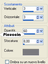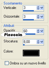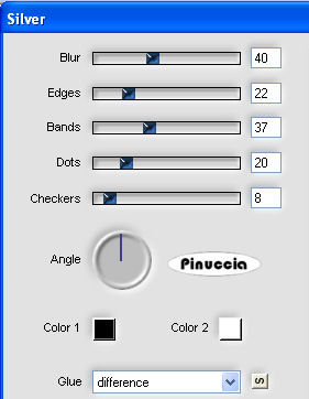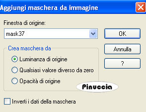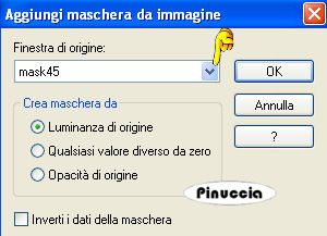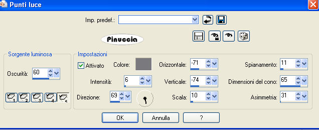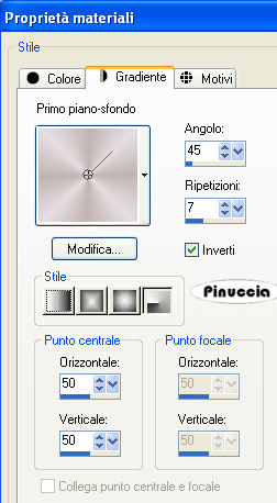 qui puoi trovare qualche risposta ai tuoi dubbi. Se l'argomento che ti interessa non è presente, ti prego di segnalarmelo. Questo tutorial è stato creato con PSP X2, ma può essere eseguito anche con le altre versioni di PSP. Per tradurlo, ho usato PSP X. Occorrente: Materiale qui I tubes usati sono di Guismo, Monique e Lory. Filtri: Flaming Pear - Silver qui 1. Apri una nuova immagine trasparente 900 x 550 pixels. 2. Imposta il colore di primo piano con #c1b3b0, e il colore di sfondo con #e4dde1. 3. Passa il colore di primo piano a Gradiente di primo piano/sfondo, stile radiale, con i seguenti settaggi. ![]() Riempi l'immagine trasparente con il gradiente.4. Effetti>Effetti di immagine>Motivo unico: ![]() 5. Livelli>Nuovo livello raster. Riempi il livello con il colore di sfondo #e4dde1.6. Apri la maschera Mask45 e minimizzala nella tua area di lavoro. Livelli>Nuovo livello maschera>Da immagine. Apri il menu sotto la finestra di origine e vedrai tutti i files aperti. Seleziona la maschera Mask45, con i seguenti settaggi: ![]() Livelli>Unisci>Unisci gruppo. Effetti>Effetti 3D>sfalsa ombra, con i seguenti settaggi, colore #7a797e. ![]() 6. Effetti>Plugins>Flaming Pear - Silver, con i seguenti settaggi - 2 volte: ![]() 7. Livelli>Nuovo livello raster. Riempi il livello con il colore di primo piano #c1b3b0.Apri la maschera Mask37 e minimizzala. Livelli>Nuovo livello maschera>Da immagine. Seleziona la maschera Mask37, con i seguenti settaggi: ![]() Livelli>Unisci>Unisci gruppo. Effetti>Effetti 3D>Sfalsa ombra, con i seguenti settaggi, colore nero #000000. ![]() Ripeti l'Effetto Sfalsa ombra, cambiando verticale e orizzontale con -3. Abbassa l'opacità di questo livello al 52%. 9. Attiva lo strumento Bacchetta magica , modalità Sostituisci, Valore RGB, tolleranza 3,e seleziona la parte centrale dell'immagine, come nell'esempio. ![]() 10. Livelli>Nuovo livello raster. Apri il tube "cal_guis_30_08_2008_mist_oeil" e vai a Modifica>Copia. Torna al tuo lavoro e vai a Modifica>Incolla nella selezione. Cambia la modalità di miscelatura di questo livello in Luminosità (Esistente), e abbassa l'opacità al 55%. 11. Effetti>Effetti di illuminazione>Punti luce, con i seguenti settaggi, colore #7a797e. ![]() il settaggio della direzione è 169, ma digitando il numero nel mio PSP, rimangono visibili soltanto le ultime due cifre 12. Selezione>Deseleziona. 13. Apri il tube "Tubed_by_monique42_3838" e vai a Modifica>Copia. Torna al tuo lavoro e vai a Modifica>Incolla come nuovo livello. Sposta il tube a sinistra, come nel mio esempio.14. Apri il tube "08Fev-Cry-By-Lory" e vai a Modifica>Copia. Torna al tuo lavoro e vai a Modifica>Incolla come nuovo livello. Sposta in basso a destra.Cambia la modalità di miscelatura di questo livello in Luminanza (Esistente). 15. Livelli>Carica/Salva maschera>Carica maschera da disco. Cerca e carica la maschera 20-20: ![]() Livelli>Unisci>Unisci gruppo. 16. Apri il tube "25_07_2006_emerald_kit_git" e vai a Modifica>Copia. Torna al tuo lavoro e vai a Modifica>Incolla come nuovo livello. Sposta in alto a destra.Cambia la modalità di miscelatura di questo livello in Luminanza (esistente). Effetti>Effetti 3D>Sfalsa ombra, con i seguenti settaggi, colore nero. ![]() 17. Livelli>Duplica. Immagine>Capovolgi. Spostalo a sinistra.Effetti>Effetti 3D>Sfalsa ombra, con i seguenti settaggi, colore nero. ![]() 18. Aggiungi un testo e il tuo nome. Nota: nel materiale trovi il testo "Time". Se intendi usarlo, apri il file in PSP ed esportalo come pennello personalizzato, quindi applicalo con un colore chiaro a tua scelta. Livelli>Unisci>Unisci visibile. 19. Immagine>Aggiungi bordatura, 10 pixels, simmetriche, con il colore #e4dde1. Seleziona questo bordo con la bacchetta magica ![]() Selezione>Inverti. Livelli>Innalza livello di sfondo. Effetti>Effetti 3D>Sfalsa ombra, con i seguenti settaggi, colore #808080. ![]() Ripeti l'Effetto Sfalsa ombra, cambiando verticale e orizzontale con -2. Immagine>Aggiungi bordatura, 20 pixels, simmetriche, con il colore #c1b3b0. Hai finito. Puoi salvare in formato jpg. Se hai problemi o dubbi, o trovi un link non funzionante, o anche soltanto per un saluto, scrivimi. 3 Marzo 2009 |