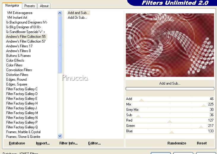 4. Effetti>Filters Unlimited - Andrews Filter 55 - Add and sub...