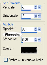 e cancella in alto la parte indicata nella schermata:![]() 17. Apri il tube "humo" ed esportalo come Pennello personalizzato: File>Esporta - pennello personalizzato. Se il tuo PSP non supporta pennelli superiori a 500 x 500 pixels, prima dell'esportazione, ridimensionalo (Immagine>Ridimensiona - 500 pixels di larghezza). Imposta il colore di primo piano con #5a3a3c. Livelli>Nuovo livello raster. Attiva lo strumento Pennello ![]() cerca e seleziona il pennello che hai appena esportato e applicalo a sinistra, cliccando con il tasto sinistro del mouse per usare il colore di primo piano. per il mio esempio, ho usato questo sistema. Decidi tu l'alternativa che preferisci. Apri humo e vai a Modifica>Copia. Torna al tuo lavoro e vai a Modifica>Incolla come nuovo livello. Nella paletta dei livelli blocca la trasparenza, cliccando sul lucchetto accanto al livello (che si chuderà). ![]() Clicca con lo strumento Riempimento sul tube e questo prenderà il colore di primo piano.![]() Effetti>Effetti 3D>sfalsa ombra, con i seguenti settaggi, colore nero. ![]() Livelli>Duplica. Immagine>Rifletti. 18. Aggiungi un testo e la tua firma su un nuovo livello. 19. Immagine>Aggiungi bordatura, 5 pixels, simmetriche, con il colore #926954. Immagine>Aggiungi bordatura, 20 pixels, simmetriche, con il colore #5a3a3c. 20. Seleziona questo bordo con la bacchetta magica ![]() Selezione>inverti. Effetti>Plugins>AAA Frames - Foto Frame: ![]() 21. Effetti>Effetti 3D>Sfalsa ombra, con i seguenti settaggi, colore nero. ![]() Se hai problemi o dubbi, o trovi un link non funzionante, o anche soltanto per un saluto, scrivimi. 12 Marzo 2009 |