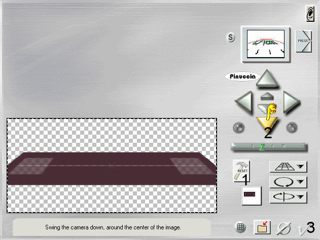 qui puoi trovare qualche risposta ai tuoi dubbi. Se l'argomento che ti interessa non è presente, ti prego di segnalarmelo. Questo tutorial è stato creato con PSP X2, ma può essere eseguito anche con le altre versioni di PSP. Per tradurlo, ho usato PSP X. Occorrente: La maschera è di Cameron. Materiale qui I tubes sono di Mtm Brigitte e Patries. La maschera Perspective Flooring-3 - che però non viene utilizzata nel tutorial è di http://www.essexgirl.uk.com/sg_masksp9.htm Essex Girl. Filtri: AAA Multifilter qui Apri il materiale in PSP, comprese la maschere. 1. Apri una nuova immagine trasparente 950 x 500 pixels. Imposta il colore di primo piano con #926954, e il colore di sfondo con #4a2d35. Riempi l'immagine trasparente con il colore di primo piano #926954.2. Livelli>Nuovo livello raster. Riempi il livello con il colore di sfondo #4a2d35.Livelli>Nuovo livello maschera>da immagine. Apri il menu sotto la finestra di origine e vedrai la lista dei files aperti. Seleziona la maschera maskCameron165: ![]() Livelli>Unisci>Unisci gruppo. 3. Attiva lo strumento Selezione , rettangolo,e seleziona la parte centrale della maschera: ![]() 4. Effetti>Plugins>Andromeda - Perspective: prima clicca su Reset per riportare il filtro ai settaggi predefiniti (1), e poi clicca due volte sulla freccia verso il basso (che diventerà gialla)(2): ![]() Nella finestra di anteprima punta il mouse sulla forma e spostala in basso. quindi clicca sul segno di spunta (3) per applicare il filtro: ![]() Dovresti avere questo: ![]() 5. Livelli>Unisci>Unisci visibile. 6. Livelli>Nuovo livello maschera>Da immagine. Seleziona la maschera "14_k35": ![]() Livelli>unisci>Unisci gruppo. 6. Effetti>Effetti 3D>Sfalsa ombra, con i seguenti settaggi, colore #000000. ![]() 7. Livelli>Nuovo livello raster. Riempi con il colore di primo piano #926954.Livelli>Disponi>Porta sotto. Attiva nuovamente il livello superiore. 8. Apri il tube "017_silvina_vanesa_orsi" e vai a Modifica>Copia. Torna al tuo lavoro e vai a Modifica>Incolla come nuovo livello. Immagine>Ridimensiona, una volta all'80%, e una volta al 95%, tutti i livelli non selezionato. Effetti>Effetti 3D>Sfalsa ombra, con i seguenti settaggi, colore #000000. ![]() Sposta il tube al centro.![]() 10. Apri il tube "1Patries_ Brons-leave sculpture_28-7-08" e vai a Modifica>Copia. Torna al tuo lavoro e vai a Modifica>Incolla come nuovo livello. Immagine>Ridimensiona, al 50%, tutti i livelli non selezionato. Posiziona il tube a destra, come nel mio esempio.11. Cambia la modalità di miscelatura di questo livello in Luminanza (esistente). Se il tube si presenta sfalsato rispetto alla linea esistente, attiva lo strumento Puntatore ![]() e ruotalo leggermente per adattarlo. ![]() 12. Livelli>duplica. 13. Immagine>Rifletti. Posiziona correttamente il duplicato.![]() 14. Apri il tube "Mtm Dieren-85-Slakken" e vai a Modifica>Copia. Torna al tuo lavoro e vai a Modifica>Incolla come nuovo livello. 15. Effetti>Effetti di distorsione>Mulinello: ![]() Nella paletta dei livelli sposta questo livello sotto il livello della donna: ![]() Cambia la modalità di miscelatura di questo livello in Luminanza (esistente). 16. Attiva lo strumento Gomma