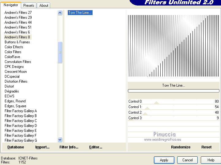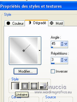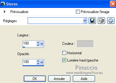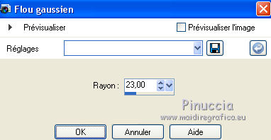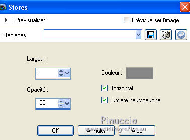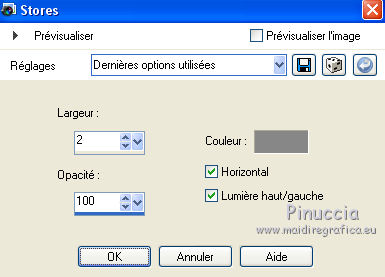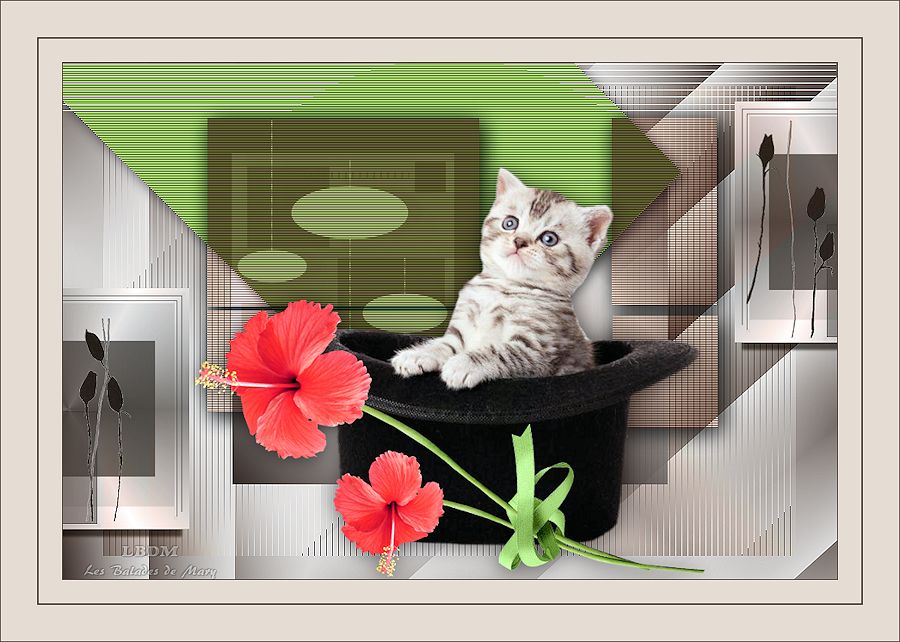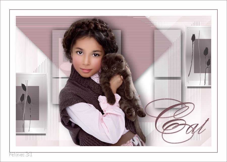 Vos versions iciCe tutoriel a été crée et traduit avec CorelX12, mais il peut également être exécuté avec les autres versions. Suivant la version utilisée, vous pouvez obtenir des résultats différents. Depuis la version X4, la fonction Image>Miroir a été remplacée par Image>Renverser horizontalement, et Image>Renverser avec Image>Renverser verticalement. Dans les versions X5 et X6, les fonctions ont été améliorées par la mise à disposition du menu Objets. Avec la nouvelle version X7, nous avons à nouveau Miroir/Retourner, mais avec nouvelles différences. Consulter, si vouz voulez, mes notes ici Certaines dénominations ont changées entre les versions de PSP. Les plus frequentes dénominations utilisées: ![]() Nécessaire pour réaliser ce tutoriel: Matériel qui Merci pour le tube AnaRidzi. Garder le nom des files. Modules Externes: consulter, si nécessaire, ma section des filtres ici Filters Unlimited 2.0 ici Andrew's Filters 8 - Tow the line ici Graphics Plus - Cross Shadow ici Filtres Andrews et Graphics Plus peuvent être utilisés seuls ou importés dans Filters Unlimited. voir comment le faire ici). Si un filtre est fourni avec cette icône, ![]() Si vous voulez utiliser vos propres couleurs, n'hésitez pas à changer le mode et l'opacité des calques Placer les sélections dans le dossier Sélections. 1. Placer en avant plan la couleur #c5c4c5, et en arrière plan la couleur blanche #ffffff. ![]() Préparer un dégradé de premier plan/arrière plan, style Linéaire. ![]() 2. Ouvrir une nouvelle image transparente 900 x 600 pixels. Remplir l'image transparente avec le dégradé.3. Réglage>Flou>Flou gaussien - rayon 23. ![]() 4. Effets>Effets de textures>Stores - couleur #c9c9c8. ![]() 5. Effets>Effets de réflexion>Miroir rotatif. ![]() 6. Calques>Dupliquer. Placer ce calque en mode Recouvrement, et réduire l'opacité à 20%. ![]() Réglage>Netteté>Netteté. 7. Calques>Fusionner>Fusionner le calque de dessous. 8. Calques>Nouveau calque raster. Sélections>Charger/Enregistrer une sélection>Charger à partir du disque. Chercher et charger la sélection Sissy_Cat1. ![]() Remplir la sélection du dégradé.9. Effets>Modules Externes>Filters Unlimited 2.0 - Andrew’s Filters 8 – Tow The Line, par défaut. ![]() Placer le calque en mode Lumière dure, et réduire l'opacité à 48%. ![]() Sélections>Désélectionner tout. 10. Calques>Nouveau calque raster. Sélections>Charger/Enregistrer une sélection>Charger à partir du disque. Chercher et charger la sélection Sissy_Cat2. ![]() Remplir la sélection du dégradé.11. Effets>Modules Externes>Graphics Plus - Cross shadow. ![]() Sélections>Désélectionner tout. 12. Calques>Nouveau calque raster. Sélections>Charger/Enregistrer une sélection>Charger à partir du disque. Chercher et charger la sélection Sissy_Cat3. ![]() Placer en avant plan la couleur #5a6a8b. Remplir la sélection avec la couleur d'avant plan #5a6a8b.13. Effets>Effets de textures>Stores - couleur #7585a5. ![]() Réglage>Netteté>Netteté. Sélections>Désélectionner tout. 14. Effets>Effets 3D>Ombre portée, couleur noire. ![]() 15. Calques>Nouveau calque raster. Sélections>Charger/Enregistrer une sélection>Charger à partir du disque. Chercher et charger la sélection Sissy_Cat4. ![]() Placer en avant plan la couleur #5c5c5c. Remplir la sélection avec la couleur d'avant plan #5c5c5c.16. Effets>Effets de textures>Stores - couleur #878787. ![]() Sélections>Désélectionner tout. 17. Effets>Effets d'image>Décalage. ![]() Placer le calque en mode Lumière dure. ![]() 18. Effets>Effets 3D>Ombre portée, couleur noire. ![]() 19. Activer Sissy-Sierrand - Édition>Copier. Revenir sur votre travail et Édition>Coller comme nouveau calque. 20. Effets>Effets d'image>Décalage. ![]() 21. Activer Sissy_Frame - Édition>Copier. Revenir sur votre travail et Édition>Coller comme nouveau calque. Déplacer le cadre à gauche.22. Activer le tube AR576 - Édition>Copier. Revenir sur votre travail et Édition>Coller comme nouveau calque. Déplacer le tube sous le cadre à gauche.![]() 23. Effets>Effets 3D>Ombre portée, couleur noire. ![]() 24. Activer le tube Sissy_frame2 - Édition>Copier. Revenir sur votre travail et Édition>Coller comme nouveau calque. Ne pas déplacer. Il est à sa place. 25. Activer Sissy tekst - Édition>Copier. Revenir sur votre travail et Édition>Coller comme nouveau calque. Déplacer le texte en bas à droite.Placer ce calque sous le calque du tube de la femme. 26. Calques>Fusionner>Tous. 27. Image>Ajouter des bordures, 1 pixel, symétrique, couleur d'avant plan du début #c5c4c5. Image>Ajouter des bordures, 27 pixels, symétrique, couleur #fefefe. Image>Ajouter des bordures, 2 pixels, symétrique, couleur d'avant plan du début #c5c4c5. Image>Ajouter des bordures, 42 pixels, symétrique, couleur #fefefe. Image>Ajouter des bordures, 1 pixel, symétrique, couleur d'avant plan du début #c5c4c5. 28. Signer votre travail et enregistrer en jpg. ![]() ![]() Olimpia ![]() Mylène ![]() Maryvonne ![]() Estrella ![]() Felinec ![]() Noella ![]() Aquarelle ![]() Mymi ![]() Gypsie ![]() Mary ![]() Madeleine ![]() Carmen ![]() Jos ![]() Melodi ![]() Nicole ![]() Hellie ![]() Si vous avez des problèmes, ou des doutes, ou vous trouvez un link modifié, ou seulement pour me dire que ce tutoriel vous a plu, vous pouvez m'écrire. 15 Octobre 2014 |