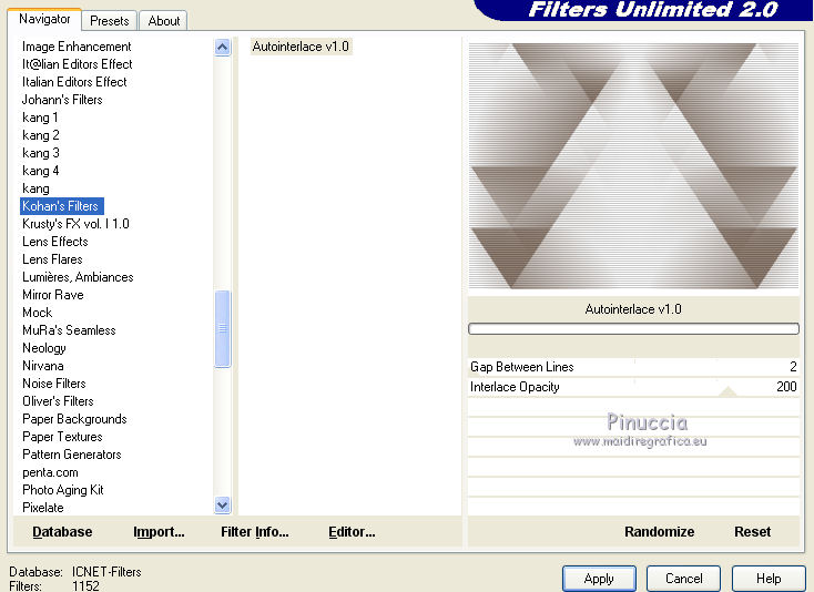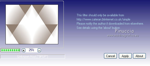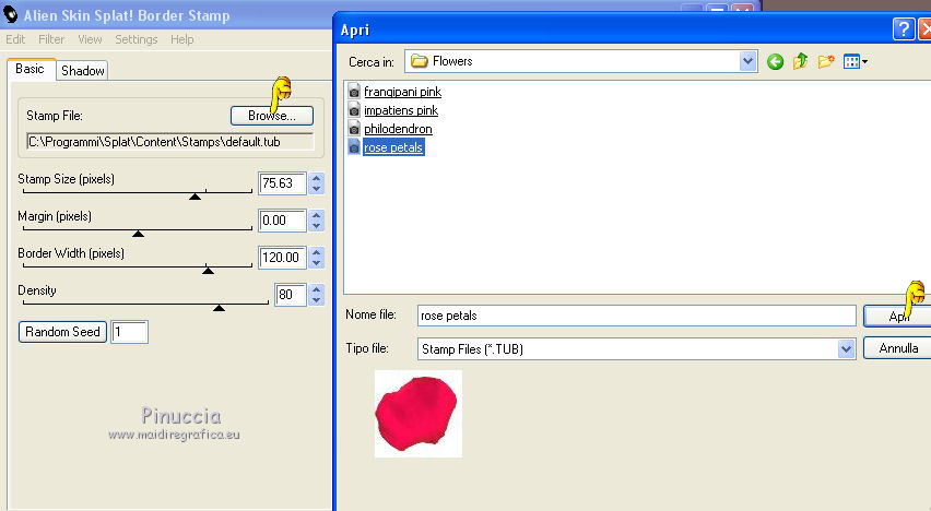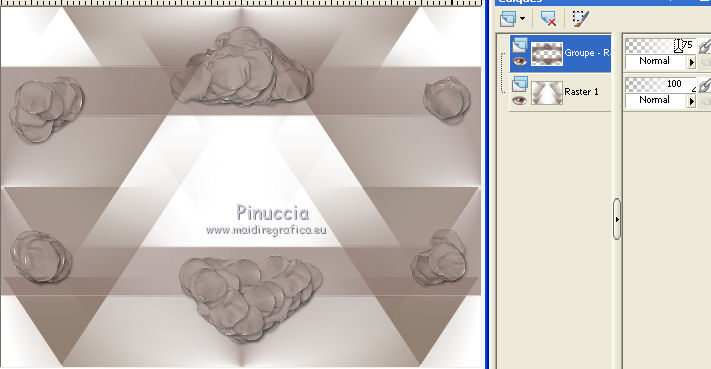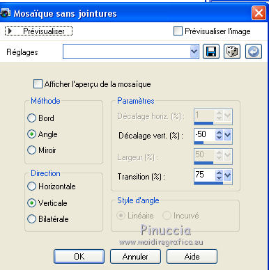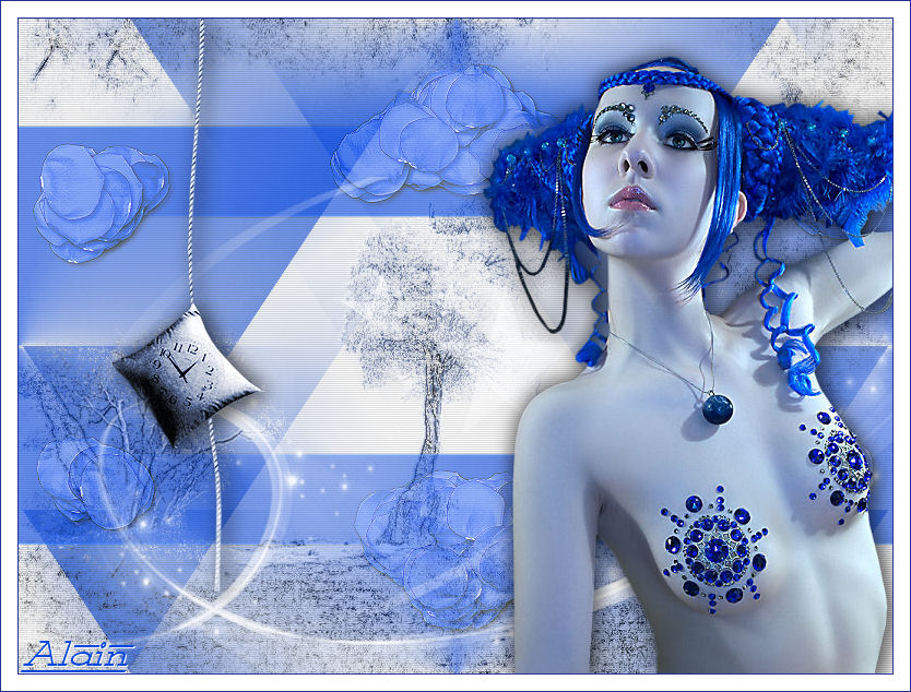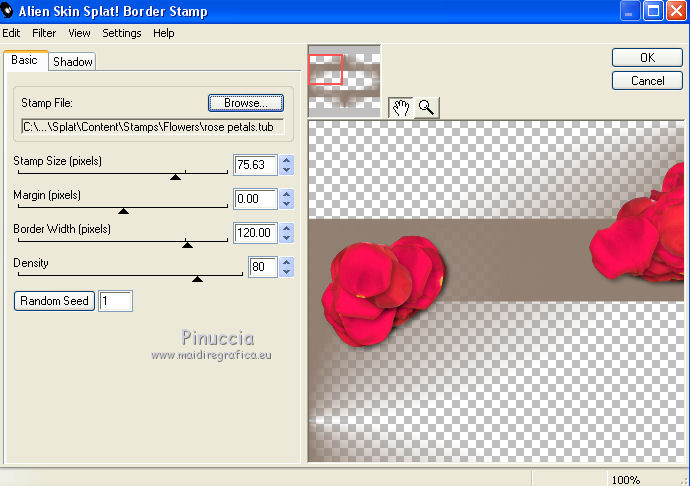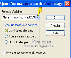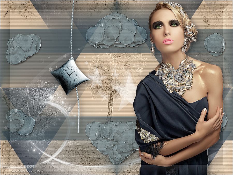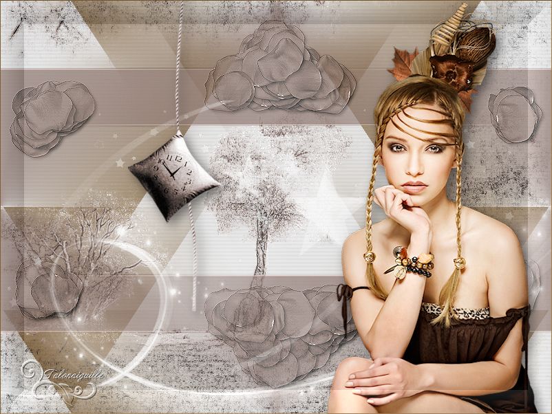 Ce tutoriel a été crée et traduit avec CorelX12, mais il peut également être exécuté avec les autres versions. Suivant la version utilisée, vous pouvez obtenir des résultats différents. Depuis la version X4, la fonction Image>Miroir a été remplacée par Image>Renverser horizontalement, et Image>Renverser avec Image>Renverser verticalement. Dans les versions X5 et X6, les fonctions ont été améliorées par la mise à disposition du menu Objets. Avec la nouvelle version X7, nous avons à nouveau Miroir/Retourner, mais avec nouvelles différences. Consulter, si vouz voulez, mes notes ici Certaines dénominations ont changées entre les versions de PSP. Les plus frequentes dénominations utilisées: ![]() Nécessaire pour réaliser ce tutoriel: Matériel qui Merci pour le tube ClaudiaViza. Pour les masque merci Cameron et Narah. Garder le nom des files. Modules Externes: consulter, si nécessaire, ma section des filtres ici Filters Unlimited 2.0 ici Simple - Quick Tile ici Alien Skin Splat - Borderstamp ici Kohan's Filters - Autointerlace ici Filtres Simple et Kohan peuvent être utilisés seuls ou importés dans Filters Unlimited. voir comment le faire ici). Si un filtre est fourni avec cette icône, ![]() Si vous voulez utiliser vos propres couleurs, n'hésitez pas à changer le mode et l'opacité des calques Placer le masque de Cameron dans le dossier Masques. Ouvrir le masque de Narah dans PSP et le minimiser avec le reste du matériel. 1. Placer en avant plan la couleur blanche #ffffff, et en arrière plan la couleur #917f72. ![]() 2. Ouvrir une nouvelle image transparente 800 x 600 pixels. Remplir l'image transparente avec la couleur blanche d'avant plan.3. Effets>Effets géométriques>Perspective verticale - couleur d'arrière plan. ![]() 4. Effets>Modules Externes>Simple - Quick Tile. ![]() 5. Effets>Effets d'image>Mosaïque sans jointures. ![]() 6. Calques>Nouveau calque raster. Remplir le calque avec la couleur d'arrière plan.7. Calques>Charger/Enregistrer un masque>Charger à partir du disque. Chercher et charger le masque maskcameron239. ![]() Calques>Fusionner>Fusionner le groupe. 8. Effets>Modules Externes>Alien Skin Splat - Borderstampa. cliquer sur Browse et s'ouvrira le dossier des presets du filtre: sélectionner sous le dossier Flowers "rose petals" et cliquer Ouvrir pour appliquer, ![]() avec ces paramètres ![]() 9. Réglage>Teinte et Saturation>Coloriser. ![]() 10. Effets>Effets de bords>Accentuer. Réduire l'opacité de ce calque à 75%. ![]() 11. Activer "overlay bomen-Sissy" - Édition>Copier. Revenir sur votre travail et Édition>Coller comme nouveau calque. Déplacer ce calques sous le calque du cadre. 12. Vous positionner sur le calque du haut de la pile. Activer le tube "Sissy-sterren" - Édition>Copier. Revenir sur votre travail et Édition>Coller comme nouveau calque. Réduire l'opacité de ce calque à 65%. 13. Calques>Nouveau calque raster. Remplir le calque avec la couleur blanche d'avant plan.14. Calques>Nouveau calque de masque>A partir d'une image. Ouvrir le menu deroulant sous la fenêtre d'origine et vous verrez la liste des images ouverts. Charger le masque Narah_Mask_Abstract203. ![]() Calques>Fusionner>Fusionner le groupe. 15. Effets>Effets d'image>Décalage. ![]() Réglage>Netteté>Netteté. 16. Activer le tube "tubeclaudiaviza-mujer2256" - Édition>Copier. Revenir sur votre travail et Édition>Coller comme nouveau calque. Image>Redimensionner, à 80%, redimensionner tous les calques décoché. Déplacer le tube à droite.17. Effets>Effets 3D>Ombre portée, couleur noire. ![]() Réglage>Netteté>Netteté. 18. Activer le tube "sissy-klok" - Édition>Copier. Revenir sur votre travail et Édition>Coller comme nouveau calque. Déplacer le tube à gauche (voir le résultat final).19. Effets>Effets 3D>Ombre portée, comme précédemment. ![]() 20. Activer le tube "sterretjes" - Édition>Copier. Revenir sur votre travail et Édition>Coller comme nouveau calque. Déplacer ce calque sous le calque du tube de la femme. 21. Vous positionner sur le calque du bas de la pile. Effets>Modules Externes>Filters Unlimited 2.0 - Kohan's Filters - Autointerlace. ![]() 22. Image>Ajouter des bordures, 1 pixel, symétrique, couleur foncée. 23. Effets>Modules Externes>Filters Unlimited 2.0 - Buttons & Frames - 3D Glass Frame 3. ![]() 24. Signer votre travail et enregistrer en jpg. ![]() Vos versions. Merci beaucoup à tous. ![]() Olimpia ![]() Talonaiguille ![]() Alain ![]() Prunelle ![]() Rossella ![]() Gypsie ![]() Mary ![]() Si vous avez des problèmes, ou des doutes, ou vous trouvez un link modifié, ou seulement pour me dire que ce tutoriel vous a plu, vous pouvez m'écrire. 15 Octobre 2014 |