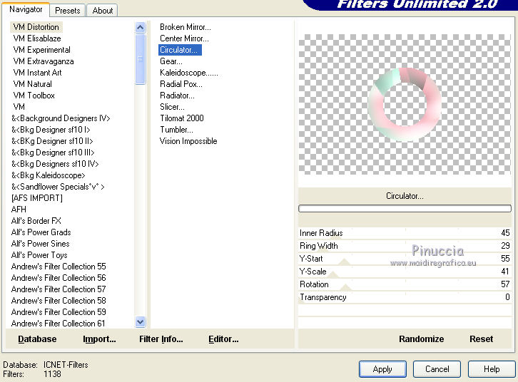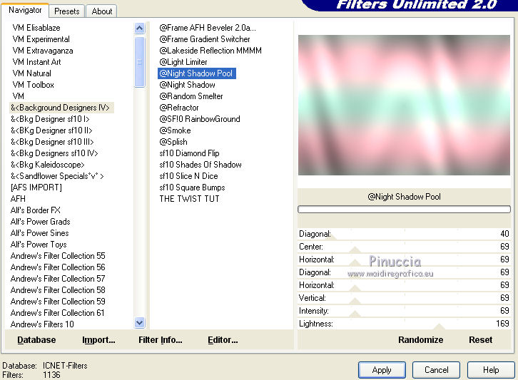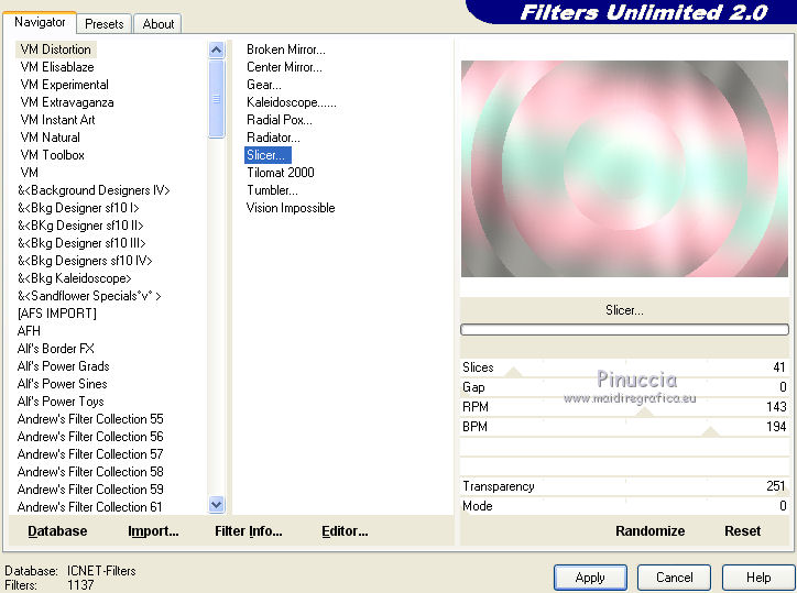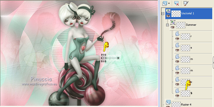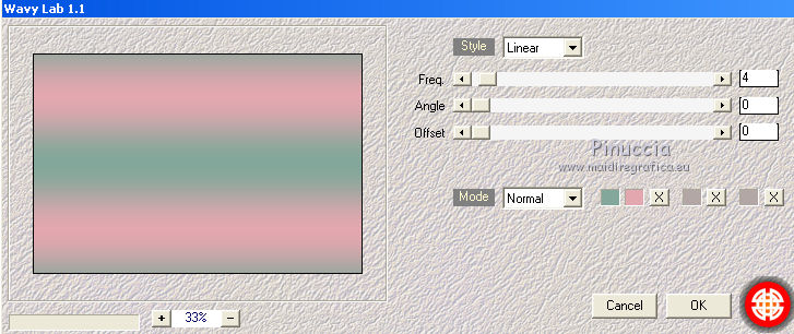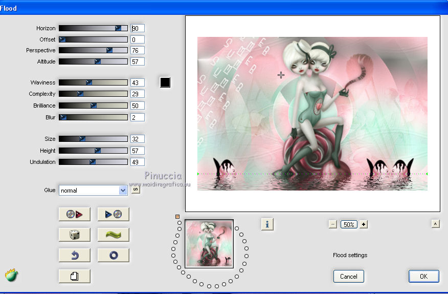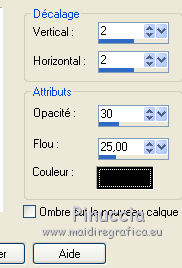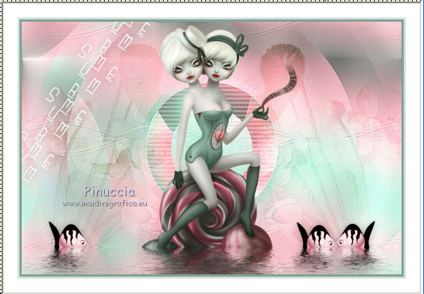Ce tutoriel a été crée et traduit avec CorelX12, mais il peut également être exécuté avec les autres versions. Suivant la version utilisée, vous pouvez obtenir des résultats différents. Depuis la version X4, la fonction Image>Miroir a été remplacée par Image>Renverser horizontalement, et Image>Renverser avec Image>Renverser verticalement. Dans les versions X5 et X6, les fonctions ont été améliorées par la mise à disposition du menu Objets. Avec la nouvelle version X7, nous avons à nouveau Miroir/Retourner, mais avec nouvelles différences. Consulter, si vouz voulez, mes notes ici Certaines dénominations ont changées entre les versions de PSP. Les plus frequentes dénominations utilisées: ![]() Nécessaire pour réaliser ce tutoriel: Matériel qui Per i tubes grazie JHanna, Joanie et Sabine. Modules Externes: consulter, si nécessaire, ma section des filtres ici Filters Unlimited 2.0 ici &<Background Designers IV> - @Night Shadow Pool (à importer dans Unlimited) ici Mehdi - Wavy Lab 1.1 ici VM DIstortion - Slicer, Circulator ici Penta.com - VTR2 ici Flaming Pear - Flood ici Mura's Meister - Copies ici Filtres VM Distortion et Penta.com peuvent être utilisés seuls ou importés dans Filters Unlimited. voir comment le faire ici). Si un filtre est fourni avec cette icône, ![]() Si vous voulez utiliser vos propres couleurs, n'hésitez pas à changer le mode et l'opacité des calques Ouvrez la police et le minimiser. Vous la trouverez dans la liste des polices disponibles lorsque vous en avez besoin. Avec les nouveaux s.o. ce n'est plus possible. Pour utiliser une police, vous devez le copier dans le dossier Fonts de Windows. Placer la sissy-texture9 dans le dossier Textures. Placer le scripts Sissy_summer 2 dans le dossier Script - Sécurisés. 1. Placer en avant plan la couleur #e2a7af, et en arrière plan la couleur #83a79a. ![]() 2. Ouvrir une nouvelle image transparente 900 x 600 pixels. 3. Effets>Modules Externes>Mehdi - Wavy Lab 1.1 ce filtre travaille avec les couleur de la palette Styles et Textures: la première est la couleur d'arrière plan, la deuxième la couleur d'avant plan garder les autres couleurs créées par le filtre. ![]() 4. Effets>Modules Externes>Filters Unlimited 2.0 - &<Background Designers IV> - @Night Shadow Pool. ![]() 5. Réglage>Flou>Flou gaussien - rayon 22. ![]() 6. Effets>Modules Externes>Filters Unlimited 2.0 - VM Distortion - Slicer. ![]() 7. Calques>Dupliquer. Effets>Modules Externes>Filters Unlimited 2.0 - VM Distortion - Circulator. ![]() 8. Effets>Modules Externes>Filters Unlimited 2.0 - Penta.com - VTR2, par défaut. ![]() Réglage>Netteté>Davantage de netteté. 9. Vous positionner sur le calque Raster 1. Effets>Effets d'image>Mosaïque sans jointures. ![]() 10. Vous positionner sur le calque du haut, copie de Raster 1. Calques>Fusionner>Fusionner le calque de dessous. 11. Effets>Effets de textures>Texture - sélectionner la texture Sissy-texture9. les réglages sont à mon choix ![]() Réglage>Netteté>Davantage de netteté. 12. Activer le tube JHanna - Édition>Copier. Revenir sur votre travail et Édition>Coller comme nouveau calque. Positionner le tube à droite dans l'arc.Placer le calque en mode Lumière douce. Réglage>Netteté>Davantage de netteté. 13. Calques>Dupliquer. Immagine>Miroir. Garder le mode Lumière douce et réduire l'opacité à 43%. ![]() 14. Activer le tube Joanie_Woman - Édition>Copier. Revenir sur votre travail et Édition>Coller comme nouveau calque. Image>Redimensionner, à 83%, redimensionner tous les calques décoché. Positionner le tube dans le centre.15. Effets>Effets 3D>Ombre portée, couleur noire. ![]() 16. Fermer la couleur d'avant plan, et placer en arrière plan la couleur blanche #ffffff. 17. Activer l'outil Texte , font BeautySchoolDrop, taille 48![]() Écrire Summer. Objets>Convertir le calque en courbes>Une forme par caractère. ![]() 18. Ouvrir le menu "vectoriel" et le menu du texte dans la palette de Calques et vous verrez chaque caractère sur son calque ![]() Cliquer sur le calque "S" ![]() et placer la lettre en haut à gauche. Répéter pour les autres lettres et vous devriez avoir ceci ![]() 19. Calques>Convertir en calque raster. 20. Effets>Modules Externes>Mura's Meister - Copies. ![]() 21. Calques>Dupliquer. Effets>Effets 3D>Ombre portée, couleur noire. ![]() 22. Calques>Fusionner>Calques visibles. 23. Activer le tube de Sabine - garder la sélection et Édition>Copier. Revenir sur votre travail et Édition>Coller comme nouveau calque. 24. Réglage>Teinte et Saturation>Coloriser. ![]() 25. Calques>Dupliquer. Image>Miroir. Calques>Dupliquer. Positionner les tube comme ci-dessous.![]() 26. Calques>Fusionner>Calques visibles. 27. Effets>Modules Externes>Flaming Pear - Flood. ![]() 28. Activer l'outil Scripts (Affichage>Barres d'outils>Script). Chercher et sélectionner le script Sissy_Summer2. Cliquer sur la petite flèche pour éxécuter le script. ![]() Voici le résultat du script. ![]() ***** En cas des problèmes avec le script, vous pouvez suivre cettes étapes: 1. Image>Ajouter des bordures, 6 pixels, symétrique, couleur vert. Image>Ajouter des bordures, 2 pixels, symétrique, couleur blanche. Image>Ajouter des bordures, 1 pixel, symétrique, couleur vert. Image>Ajouter des bordures, 35 pixels, symétrique, couleur blanche. Image>Ajouter des bordures, 1 pixel, symétrique, couleur vert. ****** 47. Signer votre travail et enregistrer en jpg. Vos versions. Merci beaucoup à tous. ![]() Olimpia ![]() Mentali ![]() Renée ![]() Blondinette ![]() Kalanne ![]() Si vous avez des problèmes, ou des doutes, ou vous trouvez un link modifié, ou seulement pour me dire que ce tutoriel vous a plu, vous pouvez m'écrire. 22 Septembre 2014 |