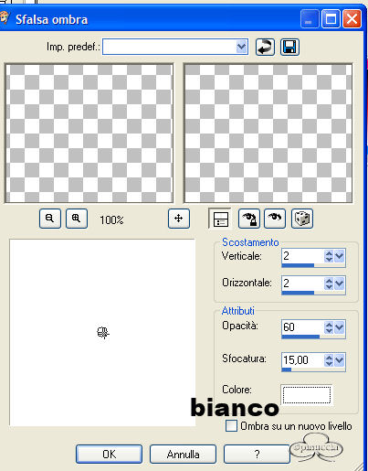 Effetti>Effetti 3D>Sfalsa ombra, con i seguenti settaggi: