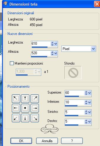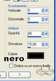 qui puoi trovare qualche risposta ai tuoi dubbi. Se l'argomento che ti interessa non è presente, ti prego di segnalarmelo. Occorrente: Materiale qui I tubes che ho usato vengono dal gruppo High Standard Tubes Apri una nuova immagine trasparente 600 x 450. Scegli due colori dal tube. Riempi l'immagine con il colore scuro.Apri il file SnakeWave e vai a Modifica>Copia. Torna al tuo lavoro e vai a Modifica>Incolla>Incolla come nuovo livello. Apri il file dei delfini e vai a Modifica>Copia. Torna al tuo lavoro e vai a Modifica>Incolla>Incolla come nuovo livello. Spostalo sotto.Nella paletta dei livelli abbassa l'opacità al 65%. Apri il file SnakeHeart1 e vai a Modifica>Copia. Torna al tuo lavoro e vai a Modifica>Incolla>Incolla come nuovo livello. Spostalo sopra a destra.Livelli>Duplica. E sposta questo cuore un po' di lato.Apri il tube del viso (FashionVictim) e vai a Modifica>Copia. Torna al tuo lavoro e vai a Modifica>Incolla>Incolla come nuovo livello. Spostalo a sinistra.Se usi un altro tube, devi ridimensionarlo a 450 pixels di altezza. Effetti>Effetti 3D>Sfalsa ombra, con i seguenti settaggi, colore nero: ![]() Se necessario, puoi ancora spostare un po' le immagini. Sei soddisfatto del risultato? Livelli>Unisci>Unisci visibile. Livelli>Nuovo livello raster. Livelli>Disponi>Sposta giù. Adesso è attivato il livello inferiore. Immagine>Dimensioni tela, e imposta 610 pixels di larghezza e 520 di altezza, con i seguenti settaggi: > ![]() Riempi il livello con lo stesso colore di sfondo usato nel livello uniti.Attiva adesso il livello superiore (cioè il livello uniti). Effetti>Effetti 3D>Sfalsa ombra, con i seguenti settaggi: ![]() Ripeti l'effetto Sfalsa ombra, ma cambiando verticale e orizzontale a -5. Apri il file delle gocce d'acqua (a-dozi-misc-stuff-waterdrops) e vai a Modifica>Copia. Torna al tuo lavoro e vai a Modifica>Incolla>Incolla come nuovo livello. Spostalo nell'angolo.Effetti>Effetti 3D>Sfalsa ombra, con i settaggi precedenti. Apri il tube SnakeBar e vai a Modifica>Copia. Torna al tuo lavoro e vai a Modifica>Incolla>Incolla come nuovo livello. Spostalo in alto.Effetti>Effetti 3D>Sfalsa ombra, con i settaggi precedenti. Scrivi il tuo nome nei cuori. Io ho scelto il font Kristin. Aggiungi il tuo watermark. Salva in formato jpg. ![]() Se hai problemi o dubbi, o trovi un link non funzionante, o anche soltanto per dirmi che ti è piaciuto, scrivimi. Giugno 2006 |