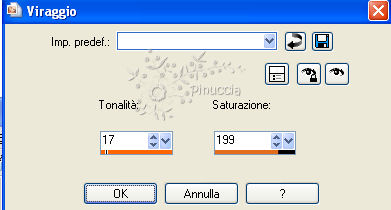 qui puoi trovare qualche risposta ai tuoi dubbi. Se l'argomento che ti interessa non è presente, ti prego di segnalarmelo. Occorrente: Lo scrapkit free di Seachell Scapz che puoi scaricare qui http://seachellscrapz.blogspot.com/search?q=an+autumn+day Il nome dello scrapkit è An Autumn Day. Il resto del materiale qui Il tube usato è di Jet Metti la maschera nella cartella Maschere. Apri il resto del materiale in PSP. Apri una nuova immagine bianca 600 x 600 pixels. Apri Paper 9 e vai a Modifica>Copia. Torna al tuo lavoro e vai a Modifica>Incolla come nuovo livello. Livelli>Carica/Salva maschera>Carica maschera da disco. Cerca e carica la maschera td_mask16, inverti trasparenza selezionato: ![]() Livelli>Unisci>Unisci gruppo. Apri Frame1 e prima cambia il colore della cornice: Regola>Tonalità e saturazione>Viraggio. ![]() Modifica>Copia. Torna al tuo lavoro e vai a Modifica>Incolla come nuovo livello. Sposta la cornice un po' più in basso.Immagine>Ridimensiona, al 105%, tutti i livelli non selezionato, ricampionamento bicubica. ![]() Apri frame2 e vai a Modifica>Copia. Torna al tuo lavoro e vai a Modifica>Incolla come nuovo livello. Sposta questa cornice in alto a sinistra.Livelli>Disponi>Sposta giù. Effetti>Effetti 3D>Sfalsa ombra, con i seguenti settaggi, colore nero. ![]() ![]() Rimani posizionato su questo livello. Apri il tube della donna e vai a Modifica>Copia. Torna al tuo lavoro e vai a Modifica>Incolla come nuovo livello. Posiziona correttamente il tube.Effetti>Effetti 3D>Sfalsa ombra, con i settaggi precedenti. ![]() Livelli>Duplica. Livelli>Disponi>Sposta su. Attiva lo strumento Gomma e cancella la parte di tube sotto la cornice. ![]() Apri Leaves2 e vai a Modifica>Copia. Torna al tuo lavoro e vai a Modifica>Incolla come nuovo livello. Sposta il tube a destra.Effetti>Effetti 3D>Sfalsa ombra, con i settaggi precedenti. Apri Swirly Ivy e vai a Modifica>Copia. Torna al tuo lavoro e vai a Modifica>Incolla come nuovo livello. Immagine>Ridimensiona, al 95%, tutti i livelli non selezionato. ![]() Spostalo a destra.Effetti>Effetti 3D>Sfalsa ombra, con i settaggi precedenti. Apri bow4 e vai a Modifica>Incolla come nuovo livello. Immagine>Ridimensiona, all'85%, tutti i livelli non selezionato. ![]() Ripeti 6 volte (più velocemente 6 volte Ctrl+X). Sposta il fiocco a sinistra.Effetti>Effetti 3D>Sfalsa ombra, con i settaggi precedenti. Apri eyelet e vai a Modifica>Incolla come nuovo livello. Immagine>Ridimensiona, al 95%, tutti i livelli non selezionato. Spostalo in basso.Effetti>Effetti 3D>Sfalsa ombra, con i settaggi precedenti. Livelli>Unisci>Unisci tutto. Aggiungi il tuo nome e/o il tuo watermark e salva in formato jpg. Per il mio testo ho usato il font Pristina Per questo esempio ho usato un tube di Lea. ![]() Se hai problemi o dubbi, o trovi un link non funzionante, o anche soltanto per un saluto, scrivimi.