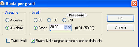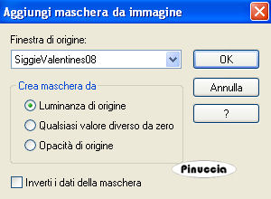 qui puoi trovare qualche risposta ai tuoi dubbi. Se l'argomento che ti interessa non è presente, ti prego di segnalarmelo. Occorrente: Materiale qui Il tube è di HellOnlegs. Se lo usi, sei pregato di inserire il ©. Apri tutto il materiale in PSP, compresa la maschera. Apri una nuova immagine BIANCA 700 x 500 pixels. Livelli>Nuovo livello raster. Selezione>Seleziona tutto. Attiva lo scrapkit "redstichedhearts". Posizionati sul livello Raster 11 e vai a Modifica>Copia. Torna al tuo lavoro e vai a Modifica>Incolla nella selezione. Selezione>Deseleziona. Livelli>Nuovo livello maschera>Da immagine: apri il menu sotto la finestra di origine e vedrai tutti i files aperti. Seleziona la maschera SiggieValentine08 con i seguenti settaggi: ![]() Effetti>Effetti di bordo>Aumenta. Livelli>Unisci>Unisci gruppo. Effetti>Effetti 3D>Sfalsa ombra, con i seguenti settaggi, colore nero. ![]() AAttiva lo scrapkit "redstichedhearts". Posizionati sul livello Copy of raster2 e vai a Modifica>Copia. Torna al tuo lavoro e vai a Modifica>Incolla come nuovo livello. Immagine>Ruota per gradi - 20 gradi a sinistra: ![]() Spostalo in alto.Effetti>Effetti 3D>Sfalsa ombra, con i settaggi precedenti. Attiva lo scrapkit "redstichedhearts". Posizionati sul livello Raster 2 e vai a Modifica>Copia. Torna al tuo lavoro e vai a Modifica>Incolla come nuovo livello. Immagine>ruota per gradi - 10 gradi a destra. ![]() Spostalo a sinistra, un po' più in basso.Effetti>Effetti 3D>Sfalsa ombra, con i settaggi precedenti. Apri il tube Candy e vai a Modifica>Copia. Torna al tuo lavoro e vai a Modifica>Incolla come nuovo livello. Spostalo a destra contro il bordo.Effetti>Effetti 3D>Sfalsa ombra, con i settaggi precedenti. Apri yezdoodle e vai a Modifica>copia. Torna al tuo lavoro e vai a Modifica>Incolla come nuovo livello. Spostalo a sinistra (vedi il mio esempio).Nella paletta dei livelli sposta questo livello sopra quello della maschera. Attiva il livello superiore. Attiva lo scrapkit "redstichedhearts". Posizionati sul livello Raster 3 e vai a Modifica>Copia. Torna al tuo lavoro e vai a Modifica>Incolla come nuovo livello. Spostalo in alto a sinistra.Attiva lo scrapkit "redstichedhearts". Posizionati sul livello Raster 4 e vai a Modifica>Copia. Torna al tuo lavoro e vai a Modifica>Incolla come nuovo livello. Sposta anche questo cuore in alto a sinistra (vedi il mio esempio).Effetti>Effetti 3D>Sfalsa ombra, con i settaggi precedenti. Apri SE-Wordart e vai a Modifica>Copia. Torna al tuo lavoro e vai a Modifica>Incolla come nuovo livello. Sposta il testo in basso a destra.Aggiungi il tuo nome e/o il tuo watermark. Per il mio testo ho usato il font Satisfaction Livelli>Unisci>Unisci tutto. Immagine>Aggiungi bordatura, 1 pixel, simmetriche, con un colore rosso. Hai finito. Puoi salvare in formato jpg. Il tube usato per questo esempio è di Lori Rhae. ![]() Se hai problemi o dubbi, o trovi un link non funzionante, o anche soltanto per un saluto, scrivimi. 1 Febbraio 2009 |