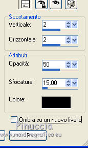 qui puoi trovare qualche risposta ai tuoi dubbi. Se l'argomento che ti interessa non č presente, ti prego di segnalarmelo. Occorrente: Un tube a scelta. Il resto del materiale qui Il tube utilizzato č di Adrimar. ![]() 1. Apri una nuova immagine bianca 700 x 700 pixels. ![]() 2. Apri sky, e vai a Modifica>Copia. Torna al tuo lavoro e vai a Modifica>Incolla come nuovo livello. Spostalo un po' pių in alto.3. Apri green land, e vai a Modifica>Copia. Torna al tuo lavoro e vai a Modifica>Incolla come nuovo livello. Spostalo in basso contro il bordo.4. Apri water, e vai a Modifica>Copia. Torna al tuo lavoro e vai a Modifica>Incolla come nuovo livello. Spostalo un po' pių in basso.5. Apri sun, e vai a Modifica>Copia. Torna al tuo lavoro e vai a Modifica>Incolla come nuovo livello. Spostalo in alto a destra.6. Apri bridge, e vai a Modifica>Copia. Torna al tuo lavoro e vai a Modifica>Incolla come nuovo livello. Spostalo un po' pių in basso.![]() 7. Apri fish, e vai a Modifica>Copia. Torna al tuo lavoro e vai a Modifica>Incolla come nuovo livello. Spostalo in basso a destra, nell'acqua.8. Effetti>Effetti 3D>Sfalsa ombra, colore nero. ![]() 9. Apri grass, e vai a Modifica>Copia. Torna al tuo lavoro e vai a Modifica>Incolla come nuovo livello. Spostalo a sinistra e un po' pių in alto,e porta il livello sotto il livello del ponte. Effetti>Effetti 3D>Sfalsa ombra, con i settaggi precedenti. Rimani su questo livello. 10. Apri seaweed 2, e vai a Modifica>Copia. Torna al tuo lavoro e vai a Modifica>Incolla come nuovo livello. Spostalo un po' pių a destra e in alto.11. Attiva il livello superiore. Apri seaweed, e vai a Modifica>Copia. Torna al tuo lavoro e vai a Modifica>Incolla come nuovo livello. Spostalo a destra![]() Effetti>Effetti 3D>Sfalsa ombra, con i settaggi precedenti. 12. Apri pompebled, e vai a Modifica>Copia. Torna al tuo lavoro e vai a Modifica>Incolla come nuovo livello. Spostalo in basso a destra.13. Apri blueflower, e vai a Modifica>Copia. Torna al tuo lavoro e vai a Modifica>Incolla come nuovo livello. Spostalo in basso a destra.![]() 14. Apri frog, e vai a Modifica>Copia. Torna al tuo lavoro e vai a Modifica>Incolla come nuovo livello. Spostalo in basso a destra.![]() Effetti>Effetti 3D>Sfalsa ombra, con i settaggi precedenti. 15. Apri il tuo tube, e vai a Modifica>Copia. Torna al tuo lavoro e vai a Modifica>Incolla come nuovo livello. Immagine>Ridimensiona, se e quanto necessario, tutti i livelli non selezionato. Spostalo come preferisci o vedi il mio esempio.Effetti>Effetti 3D>sfalsa ombra, con i settaggi precedenti. 16. Apri bugs, e vai a Modifica>Copia. Torna al tuo lavoro e vai a Modifica>Incolla come nuovo livello. Spostalo in alto a destra.Effetti>Effetti 3D>Sfalsa ombra, con i settaggi precedenti. 17. Apri grass 2, e vai a Modifica>Copia. Torna al tuo lavoro e vai a Modifica>Incolla come nuovo livello. Spostalo in basso a sinistra.Effetti>Effetti 3D>Sfalsa ombra, con i settaggi precedenti. 18. Aggiungi il tuo nome e/o il tuo watermark. Per il mio esempio ho usato il font Nathan Alternates 19. Livelli>Unisci>Unisci tutto e salva in formato jpg. ![]() Se hai problemi o dubbi, o trovi un link non funzionante, o anche soltanto per un saluto, scrivimi. |