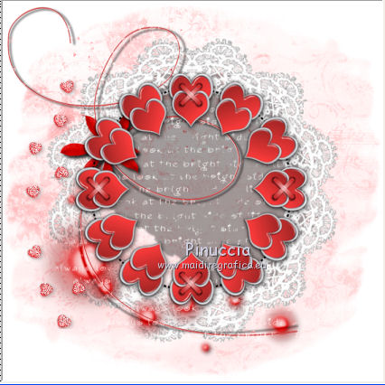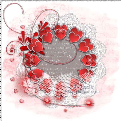 qui puoi trovare qualche risposta ai tuoi dubbi. Se l'argomento che ti interessa non č presente, ti prego di segnalarmelo. Occorrente: Un tube a scelta. Il resto del materiale qui Il tube utilizzato č di Alies. ![]() 1. Apri una nuova immagine bianca 700 x 700 pixels. ![]() 2. Apri "back" e vai a Modifica>Copia. Torna al tuo lavoro e vai a Modifica>Incolla come nuovo livello. 3. Apri mask e vai a Modifica>Copia. Torna al tuo lavoro e vai a Modifica>Incolla come nuovo livello. E' al suo posto. Non spostarlo. 4. Apri lace frame e vai a Modifica>Copia. Torna al tuo lavoro e vai a Modifica>Incolla come nuovo livello. 5. Apri heart frame e vai a Modifica>Copia. Torna al tuo lavoro e vai a Modifica>Incolla come nuovo livello. 6. Apri little hearts e vai a Modifica>Copia. Torna al tuo lavoro e vai a Modifica>Incolla come nuovo livello. Spostalo a sinistra.![]() 7. Apri Bibi my love e vai a Modifica>Copia. Torna al tuo lavoro e vai a Modifica>Incolla come nuovo livello. Spostalo a sinistra.Porta questo livello sotto il livello della cornice. ![]() 8. Attiva il livello superiore. Apri lace e vai a Modifica>Copia. Torna al tuo lavoro e vai a Modifica>Incolla come nuovo livello. Spostalo in basso e un po' pių a sinistra.9. Apri doodle e vai a Modifica>Copia. Torna al tuo lavoro e vai a Modifica>Incolla come nuovo livello. Spostalo a sinistra e un po' pių in alto.![]() Livelli>Duplica. Immagine>Capovolgi. Sposta questo elemento un po' pių in basso.![]() 10. Apri il tuo tube e vai a Modifica>Copia. Torna al tuo lavoro e vai a Modifica>Incolla come nuovo livello. Spostalo dove preferisci,e cancella eventuali parti del tube che non devono vedersi.12. Effetti>Effetti 3D>Sfalsa ombra, colore nero. ![]() 13. Apri wordart e vai a Modifica>Copia. Torna al tuo lavoro e vai a Modifica>Incolla come nuovo livello. Spostalo in basso a destra.14. Aggiungi il tuo nome e/o il tuo watermark su un nuovo livello. Per il mio testo ho usato il font Rostock Kaligraph 15. Livelli>Unisci>Unisci tutto e salva in formato jpg. ![]() Se hai problemi o dubbi, o trovi un link non funzionante, o anche soltanto per un saluto, scrivimi. |