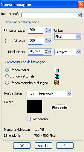 qui puoi trovare qualche risposta ai tuoi dubbi. Se l'argomento che ti interessa non č presente, ti prego di segnalarmelo. Occorrente: Materiale qui Lo scrapkit č di Muriel. Apri una nuova immagine NERA 700 x 500 pixels. ![]() Livelli>Nuovo livello raster. Selezione>Seleziona tutto. Posizionati sul livello Raster 4 dello scrapkit e vai a Modifica>Copia. Torna al tuo lavoro e vai a Modifica>Incolla nella selezione. Selezione>Deseleziona. Posizionati sul livello Raster 7 dello scrapkit e vai a Modifica>Copia. Torna al tuo lavoro e vai a Modifica>Incolla come nuovo livello. Sposta la cornice in alto a destra.Posizionati sul livello Raster 13 dello scrapkit e vai a Modifica>Copia. Torna al tuo lavoro e vai a Modifica>Incolla come nuovo livello. Sposta la cornice a sinistra e un po' pių in basso.Livelli>Disponi>Sposta gių. Effetti>Effetti 3D>Sfalsa ombra, con i seguenti settaggi, colore #b8b483. ![]() Attiva il livello superiore. Attiva lo strumento Bacchetta magica ![]() e clicca al centro della cornice. ![]() Apri il tube della donna. Immagine>Rifletti. Modifica>Copia. Torna al tuo lavoro e vai a Modifica>Incolla nella selezione. Selezione>Deseleziona. Effetti>Effetti 3D>Sfalsa ombra, con i settaggi precedenti. Posizionati sul livello Raster 8 dello scrapkit e vai a Modifica>Copia. Torna al tuo lavoro e vai a Modifica>Incolla come nuovo livello. Sposta la decorazione dentro la cornice rotonda.Effetti>Effetti 3D>Sfalsa ombra, con i settaggi precedenti. Posizionati sul livello Raster 5 dello scrapkit e vai a Modifica>Copia. Torna al tuo lavoro e vai a Modifica>Incolla come nuovo livello. Sposta il nastro in alto a sinistra.Livelli>Duplica. Immagine>Rifletti. Immagine>Capovolgi. Posizionati sul livello Raster 6 (il fiocco nero) dello scrapkit e vai a Modifica>Copia. Torna al tuo lavoro e vai a Modifica>Incolla come nuovo livello. Sposta il fiocco in alto sul bordo della cornice rotonda.Effetti>Effetti 3D>Sfalsa ombra, con i settaggi precedenti. Posizionati sul livello Raster 9 (il fiocco giallo) dello scrapkit e vai a Modifica>Copia. Torna al tuo lavoro e vai a Modifica>Incolla come nuovo livello. Sposta il fiocco sopra quello nero.![]() Effetti>Effetti 3D>Sfalsa ombra, con i settaggi precedenti. Attiva lo strumento Testo , font PassionConflictRob, dimensione 250 pixels.![]() Imposta il colore di primo piano con un motivo oro. ![]() se non hai un motivo oro clicca qui Imposta il colore di sfondo con il nero. Scrivi la prima lettera del tuo nome. Usa i nodi vettoriali dello strumento per allungare la lettera. ![]() Livelli>Converti in livello raster. Riduci la dimensione del testo a 72 pixels (nel mio esempio l'ho ridotta a 85) e scrivi il resto del tuo nome. Livelli>Converti in livello raster. Livelli>Unisci>Unisci gių. Effetti>Effetti 3D>Sfalsa ombra, con i settaggi precedenti. Livelli>Unisci>Unisci tutto. Immagine>Aggiungi bordatura, 3 pixels, simmetriche, con il colore bianco. Seleziona il bordo bianco con la bacchetta magica ![]() e riempilo con il motivo oro.Selezione>Deseleziona. Aggiungi, se vuoi, il tuo watermark, e salva in formato jpg. Se hai problemi o dubbi, o trovi un link non funzionante, o anche soltanto per un saluto, scrivimi. 26 Gennaio 2009 |