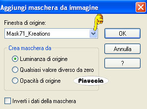 qui puoi trovare qualche risposta ai tuoi dubbi. Se l'argomento che ti interessa non è presente, ti prego di segnalarmelo. Occorrente: Materiale qui Il materiale scrap è di Scrappy Expressions Il tube è di Popeye Wong Apri tutto il materiale in PSP, compresa la maschera. Apri una nuova immagine BIANCA 700 x 500 pixels. Livelli>Nuovo livello raster. Imposta il colore di primo piano con #b0a396. Riempi il livello con il colore di primo piano.Livelli>Nuovo livello maschera>Da immagine: apri il menu sotto la finestra di origine e vedrai la lista dei files aperti. Seleziona la maschera Mask71_Kreations: ![]() Livelli>Unisci>Unisci gruppo. Apri SE_Sentimental_filmstrip e vai a Modifica>Copia. Torna al tuo lavoro e vai a Modifica>Incolla come nuovo livello. E' già correttamente posizionato; non occorre spostarlo. Effetti>Effetti 3D>Sfalsa ombra, con i seguenti settaggi, colore nero. ![]() Apri "4backgrounds" e vai a Modifica>Copia. Torna al tuo lavoro e vai a Modifica>Incolla come nuovo livello. Spostalo esattamente sotto i quattro fotogrammi a destra della striscia.L'ultimo a sinistra rimane vuoto. Più tardi sarà coperto dalle altre immagini. Naturalmente, se vuoi, puoi riempire il fotogramma con quello che preferisci. ![]() Livelli>Disponi>Sposta giù. Apri SE_Sentimental_Frame e vai a Modifica>Copia. Torna al tuo lavoro e vai a Modifica>Incolla come nuovo livello. Immagine>ruota per gradi - 10 gradi a sinistra: ![]() Sposta la cornice un po' più a destra e un po' più in basso.Livelli>Disponi>Sposta giù. Questo livello deve trovarsi sotto il livello delle quattro immagini di sfondo. ![]() Attiva il livello superiore. Apri "Splash" e vai a Modifica>Copia. Torna al tuo lavoro e vai a Modifica>Incolla come nuovo livello. Sposta l'immagine in alto a sinistra.Nella paletta dei livelli sposta questo livello sopra quello della maschera (gruppo raster 1). ![]() Livelli>Duplica. Immagine>Capovolgi. Sposta il duplicato in basso a destra.Attiva il livello superiore. Apri SE_Sentimental_Flowersticker1 e vai a Modifica>Copia. Torna al tuo lavoro e vai a Modifica>Incolla come nuovo livello. Sposta questo fiore a sinistra.Apri SE_Sentimental_Flowersticker2 e vai a Modifica>Copia. Torna al tuo lavoro e vai a Modifica>Incolla come nuovo livello. Sposta questo fiore a sinistra, sotto il precedente.Apri il tube Grab-life-by-the-pole e vai a Modifica>Copia. Torna al tuo lavoro e vai a Modifica>Incolla come nuovo livello. Sposta il tube a destra.Effetti>Effetti 3D>Sfalsa ombra, con i settaggi precedenti. Aggiungi il tuo nome e/o il tuo watermark. Livelli>Unisci>Unisci tutto e salva in formato jpg. Per questo esempio ho usato un tube di Nurso: ![]() Se hai problemi o dubbi, o trovi un link non funzionante, o anche soltanto per un saluto, scrivimi. 21 Marzo 2009 |