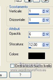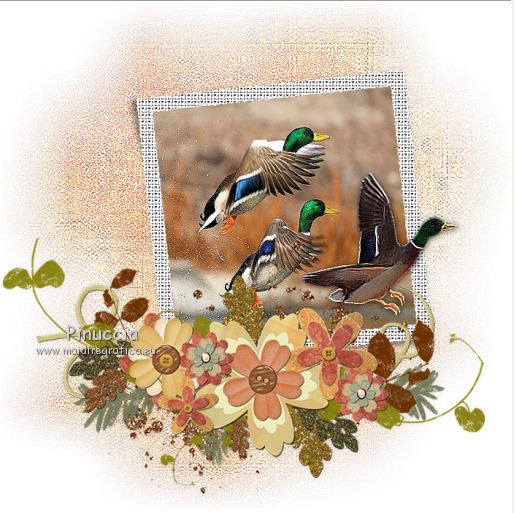 qui puoi trovare qualche risposta ai tuoi dubbi. Se l'argomento che ti interessa non è presente, ti prego di segnalarmelo. Occorrente: Un tube a scelta. Il resto del materiale qui Il tube utilizzato è di LisaT. Una parte del materiale utilizzato è di Sonel ![]() 1. Apri una nuova immagine bianca 700 x 700 pixels. ![]() 2. Apri "mask" e vai a Modifica>Copia. Torna al tuo lavoro e vai a Modifica>Incolla come nuovo livello. 3. Apri "frame" e vai a Modifica>Copia. Torna al tuo lavoro e vai a Modifica>Incolla come nuovo livello. Sposta la cornice un po' più in alto e a destra.Se necessario, potrai sempre correggere la posizione della cornice. 4. Attiva lo strumento Bacchetta magica ![]() e clicca al centro della cornice per selezionarla. 5. Apri l'immagine "eenden" e vai a Modifica>Copia. Torna al tuo lavoro e vai a Modifica>Incolla nella selezione. Selezione>Deseleziona. 6. Effetti>Effetti 3D>Sfalsa ombra, colore nero. ![]() 7. Apri "fall cluster" e vai a Modifica>Copia. Torna al tuo lavoro e vai a Modifica>Incolla come nuovo livello. Spostalo in basso.![]() Effetti>Effetti 3D>Sfalsa ombra, con i settaggi precedenti. 8. Apri "duck" e vai a Modifica>Copia. Torna al tuo lavoro e vai a Modifica>Incolla come nuovo livello. Spostalo a destra, sul bordo della cornice.![]() Effetti>Effetti 3D>Sfalsa ombra, con i settaggi precedenti. 9. Apri il tuo tube e vai a Modifica>Copia. Torna al tuo lavoro e vai a Modifica>Incolla come nuovo livello. Immagine>Ridimensiona, se e quanto necessario, tutti i livelli non selezionato. Spostalo a sinistra.Effetti>Effetti 3D>Sfalsa ombra, con i settaggi precedenti. 10. Apri "wordart" e vai a Modifica>Copia. Torna al tuo lavoro e vai a Modifica>Incolla come nuovo livello. Spostalo in alto a destra.11. Aggiungi il tuo nome e/o il tuo watermark. Per il mio testo ho usato il font JeffrianaJF 12. Livelli>Unisci>Unisci tutto e salva in formato jpg. ![]() Se hai problemi o dubbi, o trovi un link non funzionante, o anche soltanto per un saluto, scrivimi. |